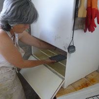 . Après séchage du vernis, on place le morceau de papier de verre aux endroits voulus, et l'on passe le tout dans la presse.
