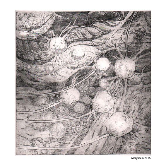 Exemple ci dessous d'une manière crayon faite avec une très fine pédicule de vernis, et dessiné au crayon de papier.
